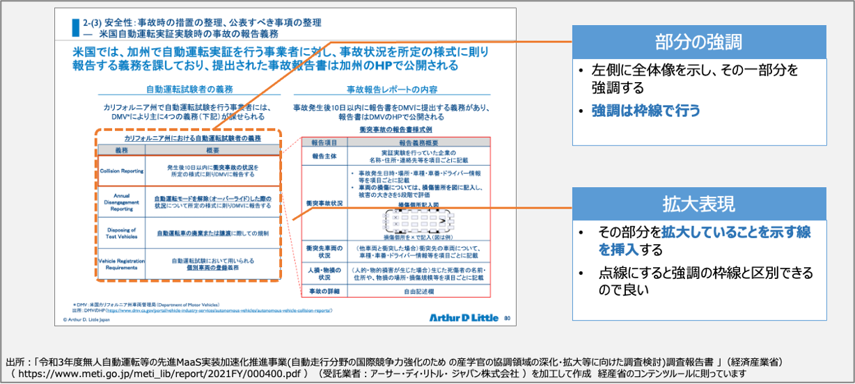 - 全体像を見せて、その一部分を拡大するような表現は資料作成の中で多用するテクニックです。